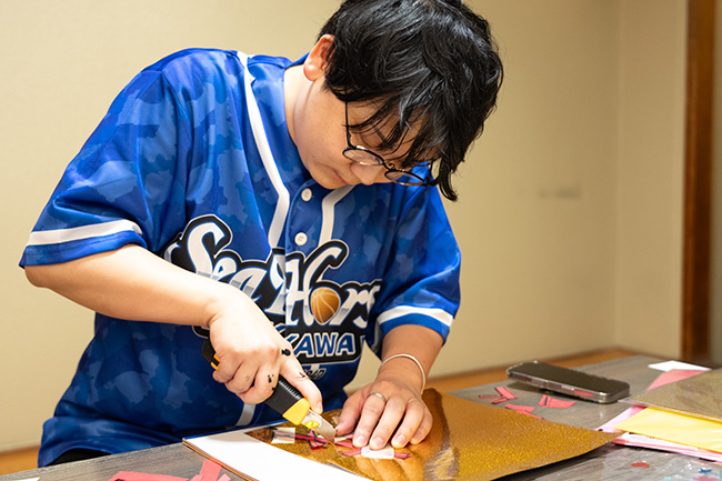 ありがたいことに、普段はデコうちわを掲げてもらうこともあるのですが、自分でデコうちわを作るのは初めてかも!?ファンの皆さんはこんなに地道で大変な思いをしながらデコうちわを作って、東海オンエアを応援してくださるのですね。自作してみて初めて気づきます(しみじみ)。でも、僕は几帳面なA型なので、こういう作業は得意ですよ~。