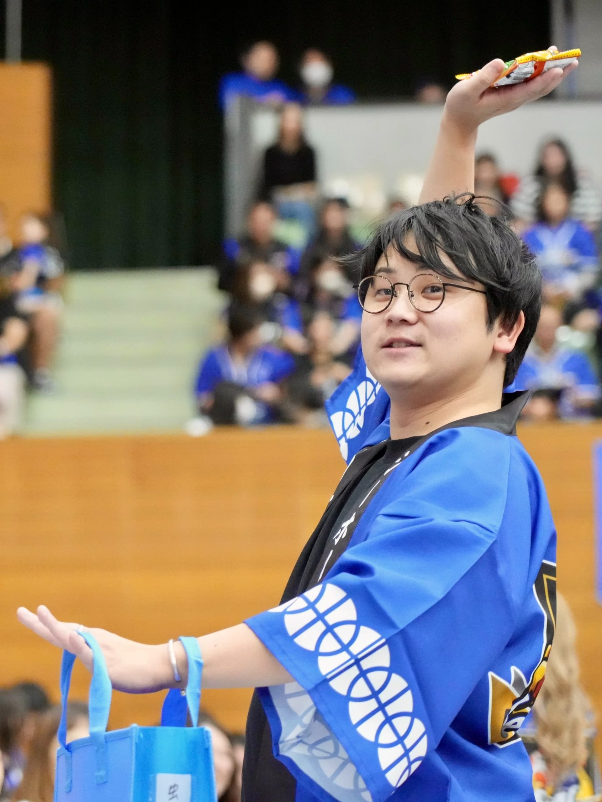 さらに、試合開始直前にはシーホース三河名物の「餅まき・菓子まき大会」に参加。スタートのコールよりも先に菓子をまいてしまうという初歩的なミスを犯したものの、会場全体のテンションを上げるお手伝いができたかと思います。最初は手を上げてくれるお子さんにお菓子をたくさんあげようと思っていましたが、大人たちの圧力に負けて最後の方は無作為に投げちゃいました。みんな欲しがりさんですね~。