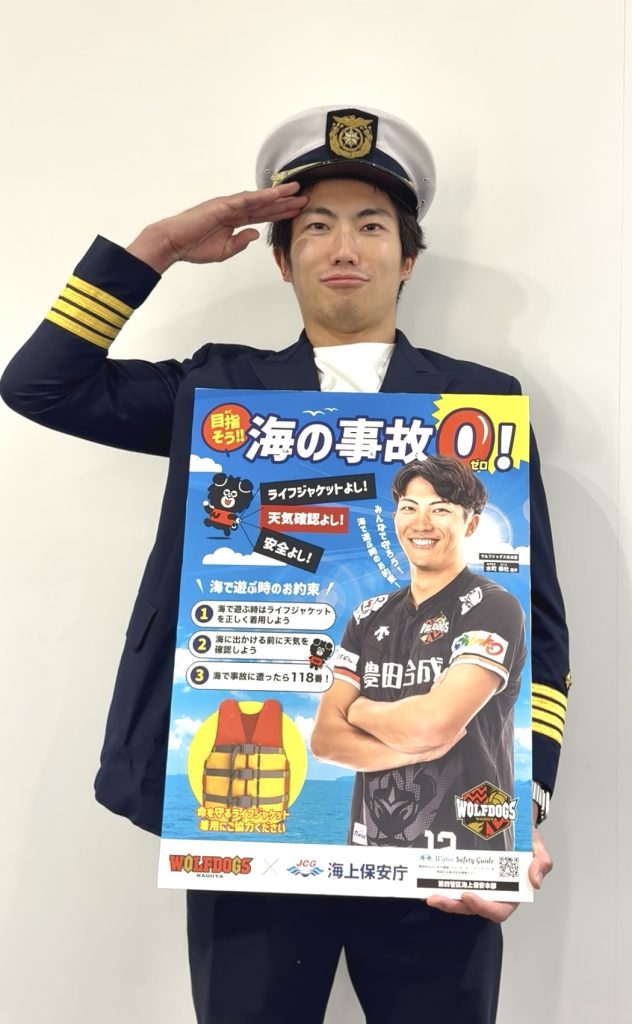 水町選手は海上保安庁との取り組みで「海の事故防止」ポスターに登場!先日は憧れの海上保安庁の制服姿を着用し、SNSで“海の事故ゼロ”を呼びかけました。
