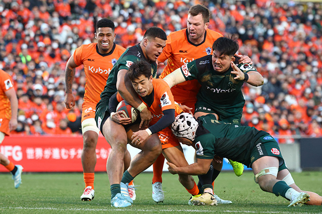 ディビジョン1のトヨタヴェルブリッツ(豊田市)は、日本選手権優勝3回、全国社会人選手権優勝5回を誇る名門だ。姫野和樹選手(FL/No8)、奥井章仁選手(FL)ら新旧の日本代表、松田力也選手(SO)に、世界的名手として知られる元オールブラックス(ニュージーランド代表)のアーロン・スミス選手(SH)ら豪華な顔ぶれが揃っている。昨シーズンはリーグ戦10位と波に乗れなかったが、優勝を争えるだけの力は十分。新シーズンの巻き返しに期待したい。