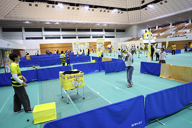 会場に着いたら、最初に立ち寄りたいのが1階・武道館内にある「スティンビーランド」。試合開始の4時間前からオープンしており、思い切り体を動かせる“キッズの遊び場”として大人気です。