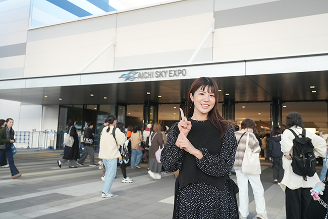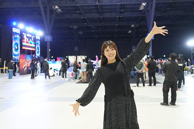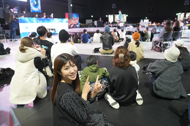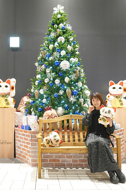 この日のAichi Sky Expoはブレイキンジャパンオープン以外にもさまざまなイベントが行われ、施設内は多くの人で賑わっていました。エントランスには大きなクリスマスツリーもあってとっても華やか。私も記念撮影を楽しみました♪